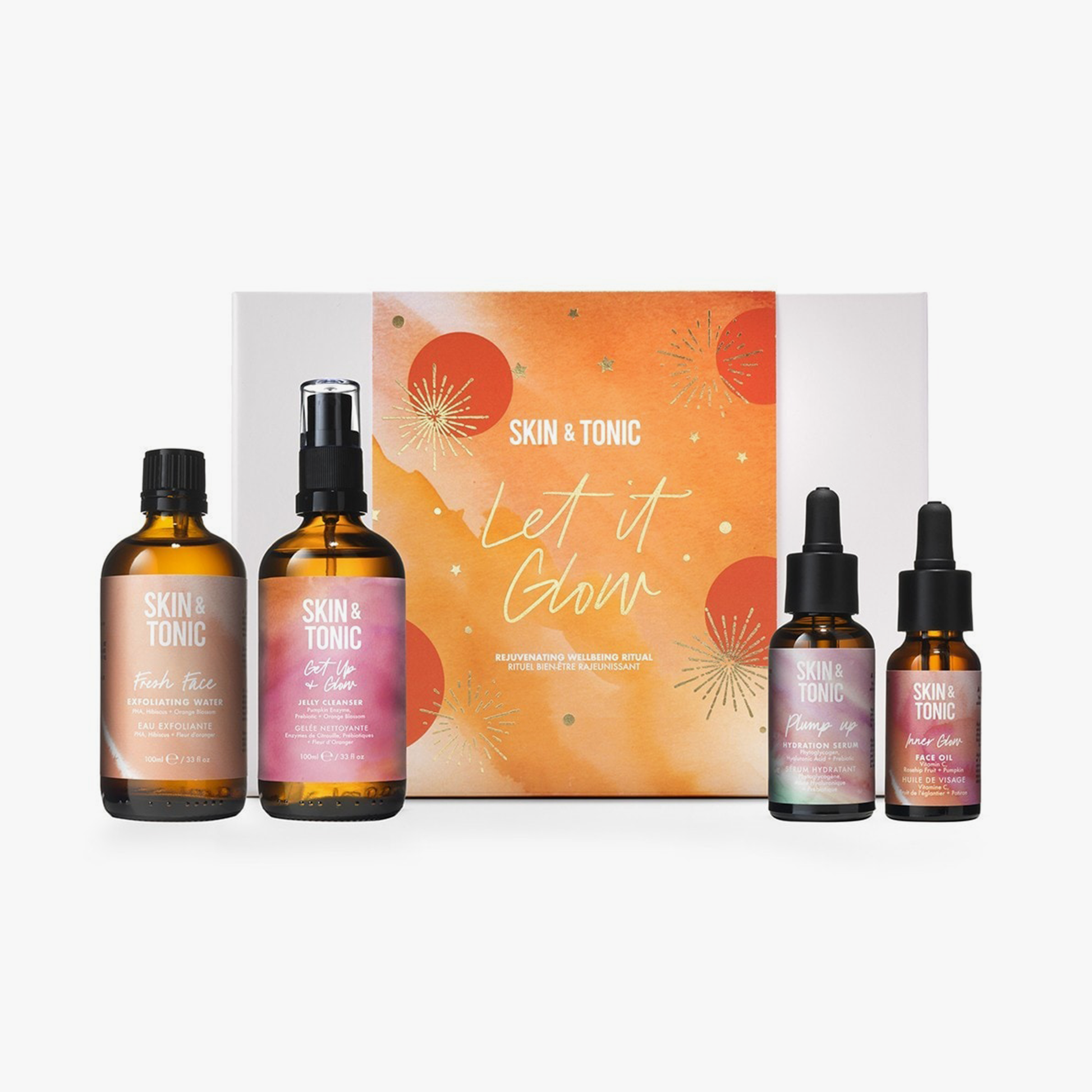 Get Up & Glow – Jelly Cleanser Gently apply 2-4 pumps onto damp skin using deliberate circular motions. Take a moment to inhale the uplifting scent of orange blossom. Rinse your skin completely with warm water. Optionally, leave it on for 10 minutes as a revitalising gel mask. Suitable for both morning and/or evening use, it can be incorporated into a double cleanse routine with the Skin & Tonic Calm Clean Cleansing Balm. –––––––––––––––––––––––––––––––––––––––––––––––––––––––––– Fresh Face – Exfoliating Water Avoid the delicate eye area. Apply once daily, then follow up with the Plump Up Hydrating Serum and your preferred Skin & Tonic face oil. Anticipate a subtle stickiness initially as dead skin cells are exfoliated. It's normal to experience a gentle tingling sensation, but discontinue use if your skin becomes red or irritated. –––––––––––––––––––––––––––––––––––––––––––––––––––––––––– Plump Up – Hydration Serum Gently massage a few drops into your face and neck, incorporating it into your skincare routine after cleansing and toning, but before applying moisturiser. This versatile product can be seamlessly integrated with the Fresh Face Exfoliating Water regimen and is suitable for use in both the morning and evening. –––––––––––––––––––––––––––––––––––––––––––––––––––––––––– Inner Glow – Face Oil Dispense 2-3 drops into your palm and delicately massage into your skin using your fingertips. Apply after cleansing, toning, and serum application. It can be used before moisturising, mixed with a moisturiser, or blended with a mask. Suitable for both morning and evening use.